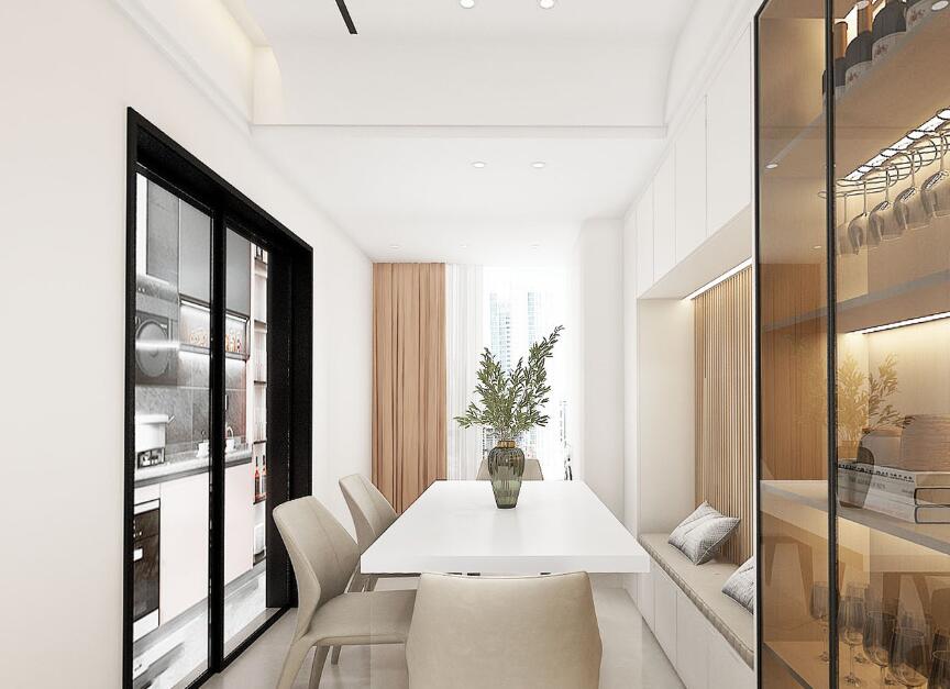 点击下方文字可看全方位展示效果龙湖揽镜孟姐雅居客餐厅奶油风全景效果图